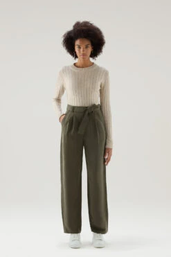 Woolrich Pantaloni Chino Tinti In Capo In Twill Di Cotone Elasticizzato – Donna – Marrone