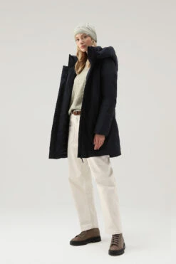 Woolrich Parka Corto In Pura Lana Vergine Vitale Barberis Canonico Con Cappuccio – Donna – Blu