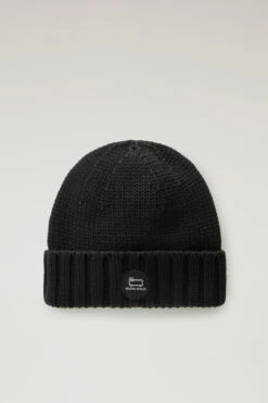 Woolrich Berretto In Pura Lana Vergine Merino Con Logo – Uomo – Nero