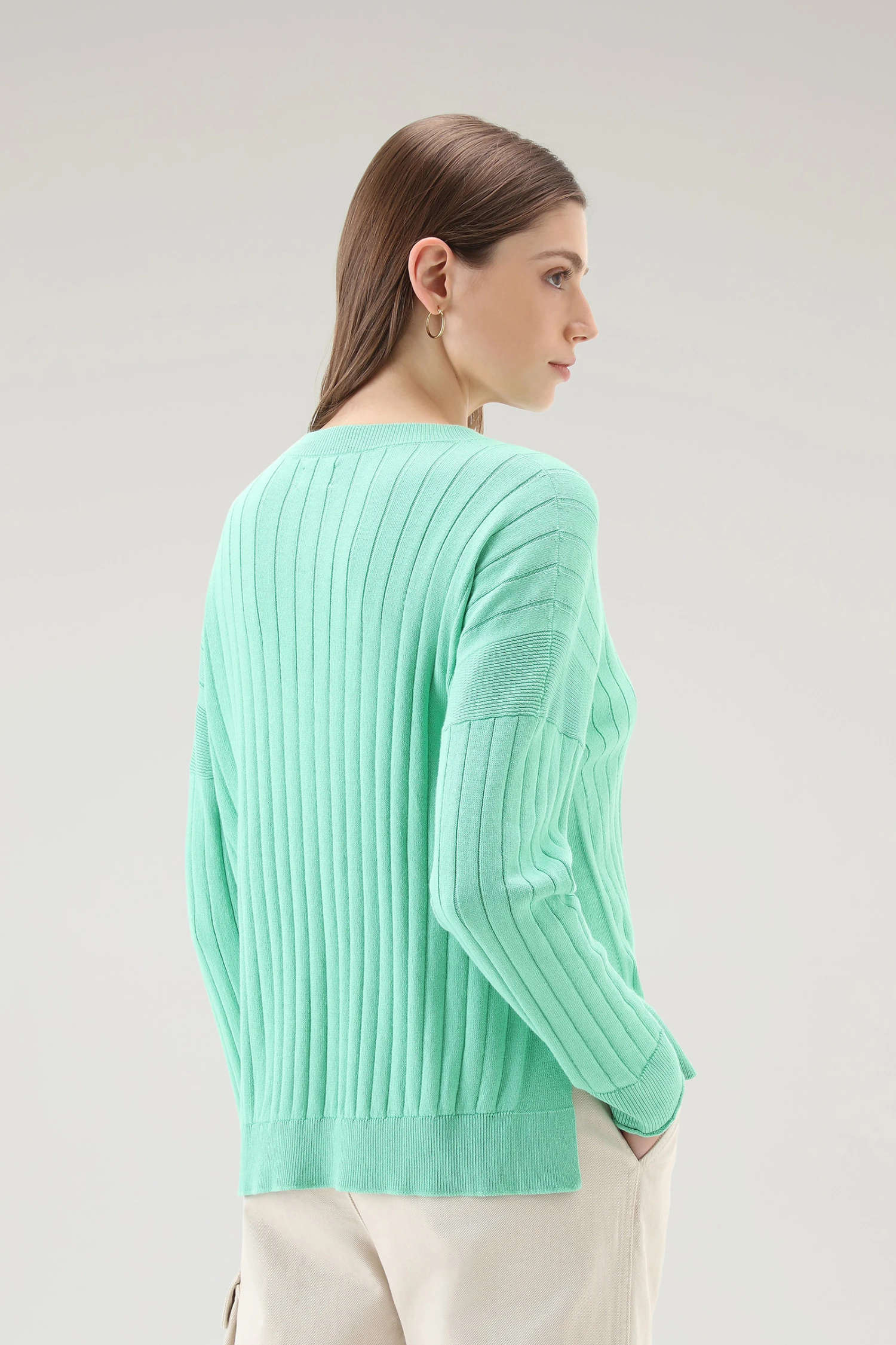 Woolrich Cardigan In Puro Cotone A Coste Larghe – Donna – Verde